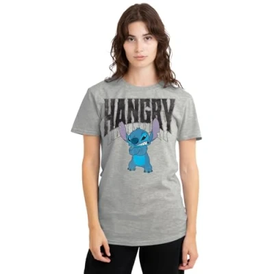 Disney Lilo and Stitch Hangry Ladies T Shirt, Athletic Heather, Small