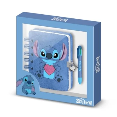 Disney Lilo and Stitch Heart Pack of Plush Diary + 6 Coloured Pen, Blue