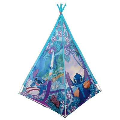PERFECT FOR IMAGINATIVE PLAY - ideal for promoting imaginative play and confidence. Tie back doors allow for an open play space or, turn into a closed off hideaway with fully integrated floor and closed top. COOL GRAPHICS - Officially Licenced with Stitch; adventure into your own imaginary world with fully printed side panels and cute character graphics ROBUST CONSTRUCTION - the Play Tent has a water resistant coating so suitable for both indoor and outdoor play. With durable 190T polyester material and PVC poles for added support and stability to prevent collapse. Built dimensions H150 x W104 x L104cm EASY TO ASSEMBLE - quick assembly with PVC pole construction through fabric channels. The tepee can also be packed away with ease in a handy carry bag for compact transportation and storage - ideal for play dates and sleepovers. This makes a great gift for birthday, Christmas, or any time of the year! SAFETY FIRST - EN71 tested. Flammability tested. CE UKCA compliant. Suitable age 2+ years., Manufacturer: MV Sports & Leisure Ltd