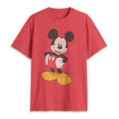 Disney Men's Classic Mickey Mouse Full Size Graphic Short Sleeve T Shirt, Red Heather, XXXL