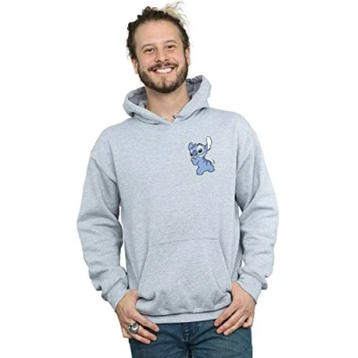 Disney Men's Lilo and Stitch Backside Breast Print Hoodie Sport Grey Medium