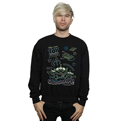 Disney Men's Toy Story Neon Little Green Men Sweatshirt Black Small