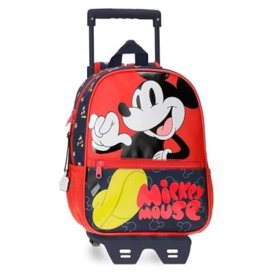 Disney Mickey Mouse Fashion Preschool Backpack with Cart Multicoloured 23 x 28 10 cm Microfibre 6.44L, Multicoloured,