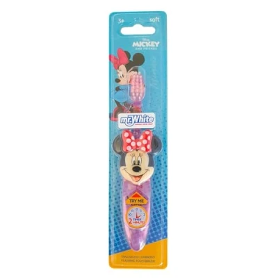Official Licensed Disney Minnie Mouse Product: Features Official Disney Minnie Mouse designs from popular movies and shows, ensuring trusted quality. 2-Minute Flashing Light Timer for a Perfect Clean: The toothbrush features a built-in 2-minute flashing light timer that guides children to brush for the dentist-recommended duration. Soft Rounded Bristles: Gentle on children’s sensitive gums, preventing irritation while providing a thorough clean. Slim, Easy-to-Hold Handle: Comfortable design ensures a comfortable grip for small hands, making brushing easier. Perfect for Kids Ages 3+: Specially designed for little ones learning good oral hygiene habits. Flat-Body Design for Convenience: Allows the toothbrush to lay flat, making toothpaste application easy and mess-free. Small Brush Head: The brush head is sized for children, fitting comfortably in tiny mouths and ensuring effective cleaning in all areas. Have Fun Brushing with Your Favourite Characters: The toothbrush features beloved cartoon characters, making brushing fun and engaging to encourage healthy oral hygiene habits. Design in Italy: Officiail Disney Minnie Mouse merchandise designed in Italy, Ensures high quality and adherence to safety standards. Thoughtful Surprise: A thoughtful present for birthdays, holidays, Christmas stockings and special occasions. Show your appreciation with a gift that truly resonates with recipients.