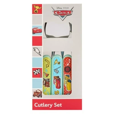 OFFICIAL CARS DISNEY CUTLERY SET: Our reusable Cars children's cutlery set is perfect for little ones who want to rev up mealtimes with their favourite characters from the Disney Cars movie. The childrens cutlery set is great for everyday use at home, to take to the grandparents, on camping trips or for taking on holiday to minimise routine disruption at mealtimes. A matching water bottle, lunch bag and tableware set are available as part of our official UK Disney Cars merchandise. IDEAL FOR LITTLE HANDS & MOUTHS: Our Cars childrens cutlery set is perfectly proportioned for little hands. The handles are chunky to make for an easier, safer grip so kids can get used to using cutlery. The knife is blunted and child-safe, with the fork and spoon heads sized appropriately to fit into children's mouths. The cutlery for children is super lightweight at 15 grams each, so great for encouraging independence while at the table. EASY TO CLEAN & EASY TO STORE: The ABS plastic is rigid and durable, with the smooth non-porous surface of the plastic handles and stainless steel ends making for easy cleaning. Our Disney Cars kids metal cutlery set is also easy to store as it's so compact - tuck away in your cutlery drawer or in our matching lunch bag. ENHANCES HAND-EYE COORDINATION & KEY SKILLS: The knife is thoughtfully designed to help your child learn the correct cutting motion safely and easily, making mealtimes stress-free. Teaching your little one how to use cutlery to cut food and butter bread for sandwiches is an important developmental milestone for 36 months up children. It supports the development of fine motor skills, which are essential as they progress through nursery and eventually into school. ENCOURAGE CHILDREN TO EAT WITH THE FAMILY: Get kids excited to use their child cutlery set at mealtimes. Sitting at the table is for grown ups and now your little one can join you! Show kids how to eat properly and interact at mealtimes by having their own knife, fork and spoon to have their meal with the family. Point out their favourite Cars movie characters on their cutlery to distract and chat with your child when they are picking at their food. Recommended Age Range children 36+ Months., Manufacturer: DNC UK Ltd