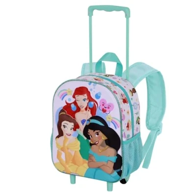 Disney Princess Rainbows Small 3D Backpack with Wheels, Multicolour, 26 x 34 cm, Capacity 7 L