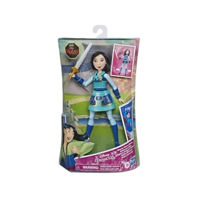 SWORD-SWINGING ACTION: This fashion doll with an action twist swings her sword when children squeeze her legs together WARRIOR OUTFIT: The Mulan doll wears her warrior fashion, complete with plastic armour pieces INSPIRED BY DISNEY'S FILM MULAN: Her short black hair, warrior outfit and sword are inspired by one of children's favourite heroines and the leading lady in Disney's film Mulan IMAGINE ADVENTURES WITH DISNEY'S MULAN: Children will love pretending their adventuring alongside Mulan as she courageously defends her family and her country DISNEY PRINCESS FASHION DOLLS FEATURE A PRINCESS FOR EVERY DREAMER: Warrior Moves Mulan is an action doll addition to children' Disney doll collection., Manufacturer: Hasbro
