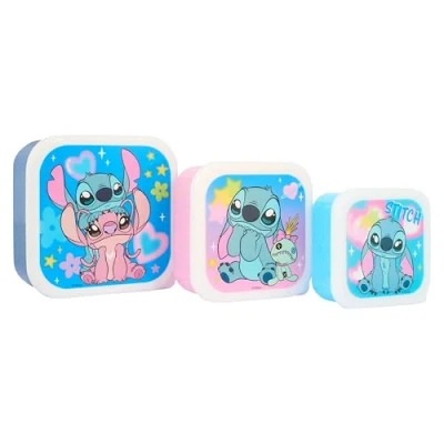 OFFICIAL DISNEY PRODUCT: This Disney Stitch complete lunch box set includes 3 stackable containers featuring adorable designs of Stitch, Lilo, and Scrump with vibrant colours and playful graphics COMPLETE SET: This Disney Toy Story nested food storage set includes 3 containers in varying sizes, perfect for packing snacks, sandwiches, and meals for school, work, or travel DURABLE CONSTRUCTION: Made from sturdy polypropylene material that provides reliable food storage for lunches, snacks, and leftovers whilst being lightweight and easy to handle PERFECT FOR YOUNG FANS: Ideal for children who love Lilo & Stitch, making mealtimes and packed lunches more exciting and encouraging kids to eat their food SPACE-SAVING STORAGE: Nested design allows the three containers to stack inside one another for compact, organised storage in cupboards or lunch bags when not in use CARE INSTRUCTIONS: Hand wash only - not suitable for microwave or dishwasher use to maintain the quality and appearance of the character designs, Weight: 0.32628414776 Pounds, Manufacturer: DNC UK Ltd