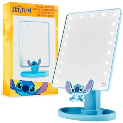 Disney Stitch LED Table Mirror with Trinket Tray, Bedroom Travel Gifts (Blue)