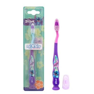Official Disney Stitch Design: Features beloved Stitch character from Disney movies. Turns brushing time into a fun, exciting daily habit with ensuring trusted quality. Designed for Kids Aged 3–12 Years: Perfect size and structure for growing mouths. Supports independent brushing as children grow. BPA-Free & Non-Toxic Materials: Made from child-safe, durable materials. Parent-approved for everyday oral care. Soft Rounded Bristles with Small Head: Gentle on sensitive gums and developing enamel. Fits tiny mouths comfortably for better reach. Upright Storage with Suction Cup Base: Stands upright on bathroom counters for easily accessible. Keeps bristles clean, dry, and hygienic.