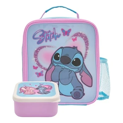 Official Disney Gifts: Our Stitch lunch bag has a food-safe, PEVA lining and is fully insulated to keep your child's food fresh. Perfect storage for a packed lunch box as well as the complimentary snack pot for kids. Part of our official Disney Stitch toys merchandise by Polar Gear and great choice of Lilo and Stitch gifts for girls. Designed For Little Hands: Our Stitch bags have a simple zip closure and wide compartment so your child can access their food without difficulty, and the wide handle at the top of the girls lunch box bag makes carrying easy. Our girls lunch bag has a side net pocket which is perfect to store a stitch water bottle from our collection. Compact Size Lunch Bags For Kids: The girls lunch bag measures approximately 25cm x 21cm x 9cm - ample room to store a lunch box for kids plus all your kids favourite snacks, making this cool bag great for everyday use for school, sports, after school clubs, days out and holidays. Complimentary snack storage box measures: 10x10x5cm. Fold Inside Out For A Spotless Clean: Our childrens lunch bag is super easy to clean. Simply curl the inside of the PEVA lining outwards by the seams to shake off crumbs and wipe down with a clean damp cloth to sanitise for next use. Hand wash the snack boxes. Write Your Child's Name on Their Disney Lunch Bag: On the bottom of the kids lunch box bag is a clear plastic window with a paper insert you can write your child’s name on, so it is easy to see who the toddler lunch bag belongs to. Durable 600d Polyester: Our Stitch kids packed lunch box bag is made from 100% 600d polyester and 100% PEVA internal lining. The higher spec 600d polyester means the lunch box kids bag is very durable and able to accommodate the heavier kids lunchbox. Care & Safety Instructions: Wipe clean with damp cloth. Do not immerse in water Not suitable for children under 36 months as small parts may present a choking hazard., Weight: 0.2866009406 Pounds, Manufacturer: Stitch Y2K