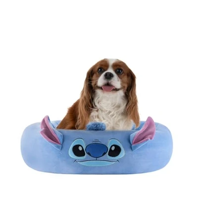 Disney Stitch Pet Bed Bolster with Character Design and Machine Washable Removable Insert Medium Sized