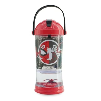 Spidey's straw tumbler has an awesome snow globe built right into the base for a power-packed punch at every meal. Watch out for sinister symbiote Venom! Wraparound Character Artwork featuring Spider-Man and Venom Featuring a flip up straw and silicone carry strap, this bottle is great for taking to school, for holidays or weekend adventures. The bottle also has a screw-top lid convenient for cleaning This kids water bottle measures approximately H19 x Dia.9cm and has a 310ml capacity for cold drinks only. It's a lightweight and compact in size, for easy use on the go. Cherish this Disney Store creation, assuring high quality and the enchanting magic that only Disney can bring., Manufacturer: Disney