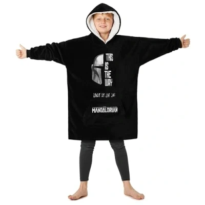 Disney The Mandalorian Blanket Hoodie for Boys Teens, Baby Yoda Fleece Wearable (Black)