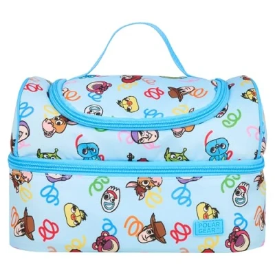 Disney Toy Story Lunch Bag with 2 Compartments, Blue, Characters Pattern, 600D Polyester, Insulated,Ideal for School & Work, Name Tag Carry Handle