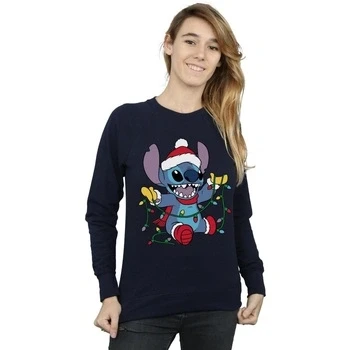 Disney Women's Lilo and Stitch Christmas Lights Sweatshirt Navy Blue Small