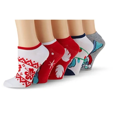 Disney Women's Lilo & Stitch 5 Pack No Show, Holiday Red Assorted, Fits Sock Size 9 11 Shoe 4 10.5