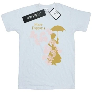 Disney Women's Mary Poppins Floral Silhouette Boyfriend Fit T Shirt White XXX Large
