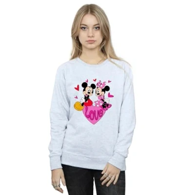 Disney Women's Mickey & Minnie Love Hearts Sweatshirt Sport Grey Medium