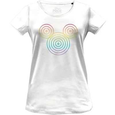 Disney Logo Rings Mickey Rainbow Pride WODMICKTS231 Women's T-Shirt, White, Size XL 100% Official Licensed Product Machine wash at 30°C inside out