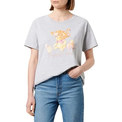 Disney Happy Easter Winnie WODWINITS011 Women's T-Shirt, China Grey, Size L 100% Official Licensed Product Machine wash at 30°C inside out