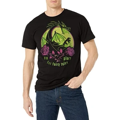 Disney Young Men's Dragon Three Tone Short Sleeve T Shirt, Black, Large