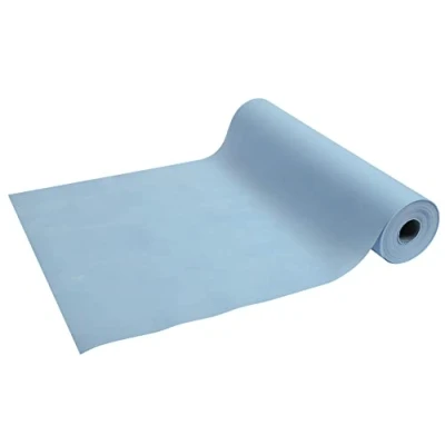 Disposable head to in non woven spun bound Roll 24 M long X 0.4 wide pre cut every 1.20 Represents 20 Tear proof, water repellent and wipe able material. Box of 4 rolls sky blue (pastel)