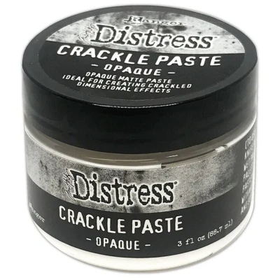 Tim Holtz Distress Texture Paste is an opaque medium ideal for creating dimensional effects on surfaces. Use with stencils for defined texture or apply freely with a palette knife. Colourize wet or dry using a variety of Distress products. Available in Matte and Crackle, each in a 3 oz jar. MPN TDA71303
