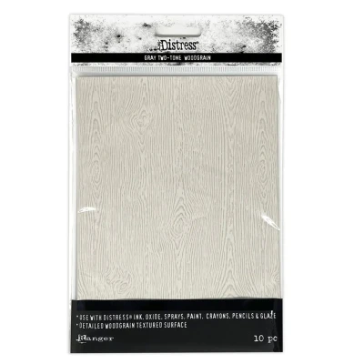 Distress Holiday Woodgrain Cardstock - Light Grey (10 Sheets of 5 x 7 Heavyweight 111lb) New for 2022, Tim Holtz Distress ® Holiday Woodgrain cardstock! Distress Holiday Woodgrain cardstock is a heavyweight 111lb surface featuring all the characteristics of real wood including knots and feels real to the touch, without the splinters! A light grey embossed surface with white groove detailing is an ideal surface for Distress Ink and Oxide, Paint, Spray Stain and Crayon techniques. Available in 5” x 7” 10 sheets per package