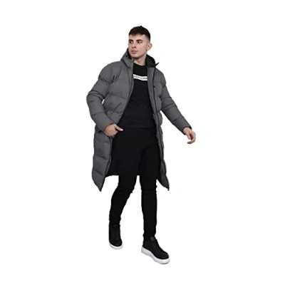 Divadames Men's Padded Parka Longline Hooded Winter Coat Warm and Cosy Long Jacket Grey Small