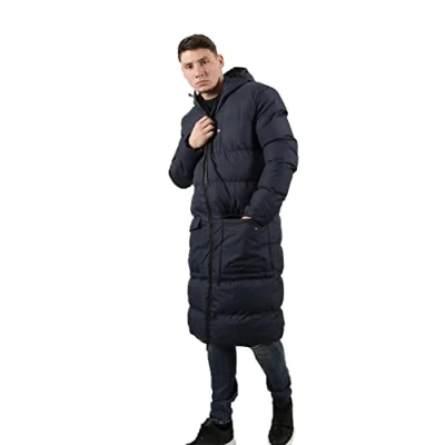 Divadames Men's Padded Parka Longline Hooded Winter Coat Warm and Cosy Long Jacket Navy Medium