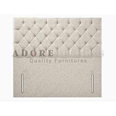 Divan Bed Floor Standing Headboard Chesterfield Chenille 50" Height Padded (Stone, 3ft Single)