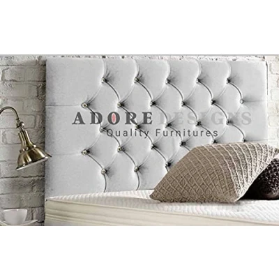 Serenity Headboards Divan Bed Headboard Chesterfield Plush Velvet 24" Height Padded Headboard (Silver, 4ft6 Double)