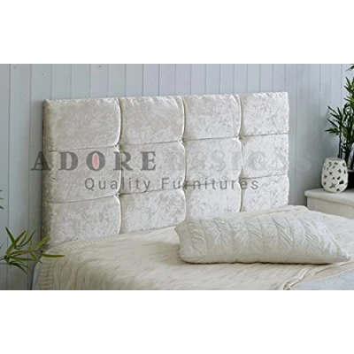 Divan Bed Headboard Roma Crushed Velvet 20" Height Padded Cubed (Cream, 3ft Single)