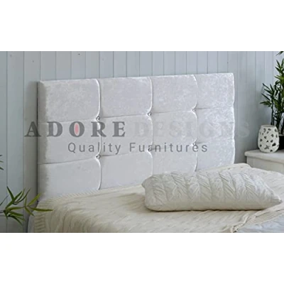 Divan Bed Headboard Roma Crushed Velvet 20" Height Padded Cubed (White, 3ft Single)