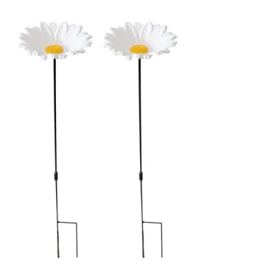 DIVCHI Bird Feeders Free Standing Flower Birds Feeding Station Garden Outdoor Pole Decorative Wild Seed Nut Water Bowl Bath Dish (Pack of 2) (White)