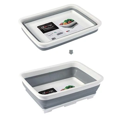 MULTI-PURPOSE: Can be used as dish tub for household needs and camping clean-up such as washing dishes and carrying iced beverages, durable chopping board for cutting, chopping and slicing after folding ideal for dishes/fruit/vegetable/meat/seafood/ or dish rack for utensil. SAFE AND PREMIUM QUALITY: Made from high quality, BPA-free, food grade premium PP+TPR material, the smart container is hygienic, lightweight, odors resistant and is safe for food. Highly durable, it will not crack, warp or split, giving you many years of use. Spill-proof trenches prevent liquid overflow, keeping the kitchen clean and healthy. COLLAPSIBLE, ADJUSTABLE, SPACE SAVING DESIGN: Ideal solution to small kitchens and crowed cabinet. This innovative and lightweight bucket is designed for easy storage and carrying that can be expanded and collapsed of its original height. It folds into a compact shape for space saving, easy storage and carrying. Easy to pack and transport, it is the perfect cooking utensil for outdoor, garden, patio, back deck, camping, picnics, BBQ, fishing, caravanning. EASY TO USE AND CLEAN: The contoured ergonomic handles and light weight allow the tub stand over the sink and hold itself, and also make pick-up and carrying easy for scraping ingredients into a pot or waste into the trash. Stain resistance for easy and convenient cleaning to preserve hygiene. STYLISH DESIGN & SOLID FUNCTIONALITY: Our philosophy is simple: offer stylish designs with no-nonsense functionality. We understand the kitchen is the heart of the home, where family & friends connect., Weight: 0.7495716908 Pounds, Manufacturer: DIVCHI