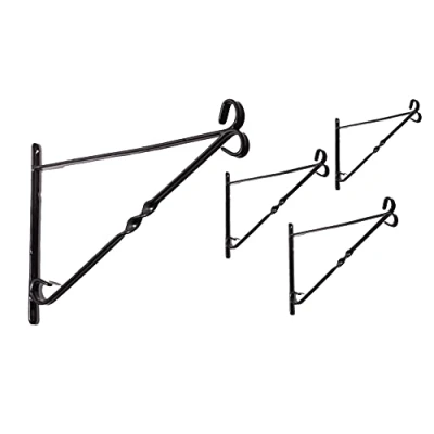 DIVCHI Pack of 4 Garden Hanging Basket Metal Wall Bracket Twisted UP TO 14" Baskets (14 Inch, Black)