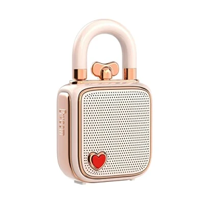 Divoom Love Lock Bluetooth Speaker, Small Portable Music Box, Wireless Stereo Pairing Retro Soundbox, Cute Desktop Decoration, for Girls, Pink