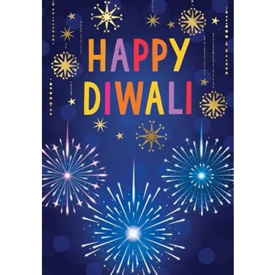 A High Quality Diwali Card and Envelope From Regal Publishing Designed and made in the UK - supporting British jobs Caption: Diwali Description: Fireworks Approximate size: 7 x 5 inches
