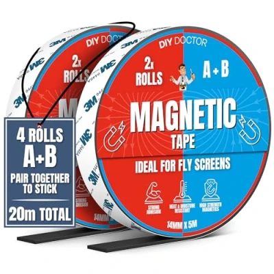 PREMIUM MAGNETIC TAPE - We have used the best backing self adhesive magnetic strips possible with a thick, durable but strong magnetic tape. Can be easily cut into magnetic strips as well LONG LASTING - Magnetic power does not degrade over time. Guaranteed for a strong, secure hold for years. The Magnetic strips will remain self adhesive for a long duration EASY TO APPLY - The A and B tape magnetically attach to each other. For a mosquito net example, you would place tape A along your window or door frame and B on the net itself - or vice versa. Great to use as self adhesive magnets POSSIBLE USES - Hanging mosquito netting or fly screens around a window or door, hanging signs or pictures, creating a strong seal on a drawer or cabinet, block out all light around black out blinds or curtains SIZES - Our tapes come in 2m2m, 5m5m and 8m8m and are intended for commercial, DIY, home and office use. The perfect solution for magnetic tape that is self adhesive