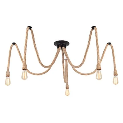 DIY Hemp Rope Retro Industrial Chandelier,Industrial 5 Lights Pendant Light Fitting,Retro E27 Edison Style Lamp/Living Room Restaurant Lights/Light Fixture,5 Lights(lampbulb is not Included)
