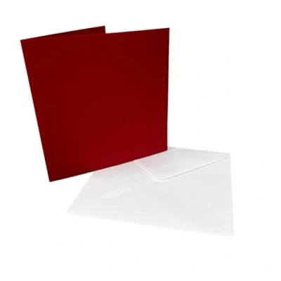 DJP 6x6 Square Creased Blank Christmas Red Smooth Cards & White Envelopes Pack of 40