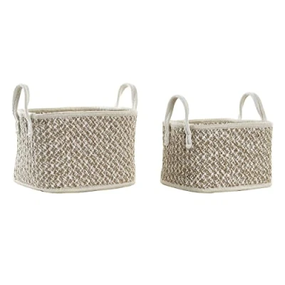 DKD Home Decor Basket Set Color: natural white Material: jute and cotton Measurements: 26 x 26 x 19 centimeters If you want to give your home an air of originality