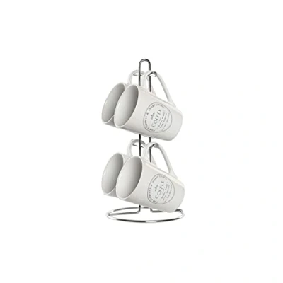 DKD Home Decor Mug Set with Plates Color: White Material: metal and stoneware Measurements: 9.5 x 10.5 x 12.5 centimeters If you like to take care of every detail of your home and stay up to date on products that will make your life easier
