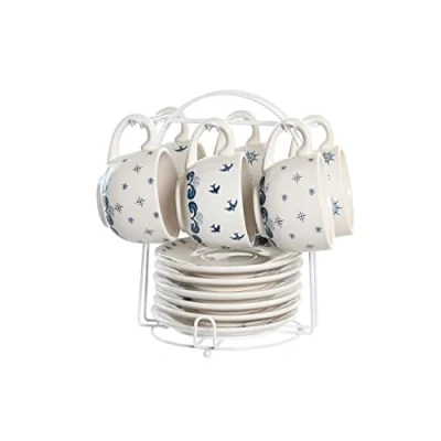 DKD Home Decor Mug Set with Plates Color: blue and white Material: Metal Measurements: 18 x 20 x 20 centimeters If you like to take care of every detail of your home and stay up to date on products that will make your life easier