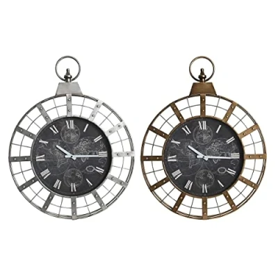 DKD Home Decor Wall Clock, Iron Crystal, Gold, Black, Estándar