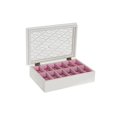 DKD Home Decor Watch Box Color: pink and white Material: MDF wood and glass Measurements: 20 x 29 x 9 centimeters If you like to take care of every detail of your home and stay up to date on products that will make your life easier