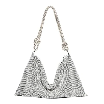 DKIIL NOIYB Rhinestone Crossbody Bag For Women Sparkly Purses Diamante Clutch Silver Evening Handbag Purse Party Bridal Night