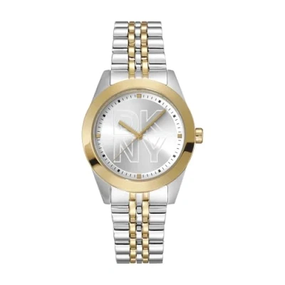 DKNY Parsons Logo Quartz Watch 5 ATM, Silver/Gold, Standard Size, Modern